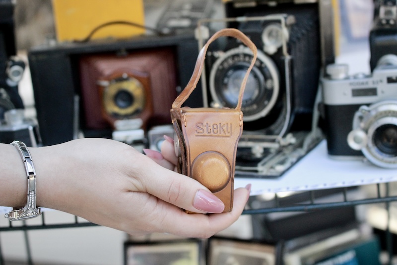 The Steky is a tiny Japanese camera that emerged in the late 1940s and shoots 16 mm film. They have become quite coveted and run expensive on resale sights. It is a crown jewel in Ralph’s collection, and even comes in a tiny leather case with a heart cutout.